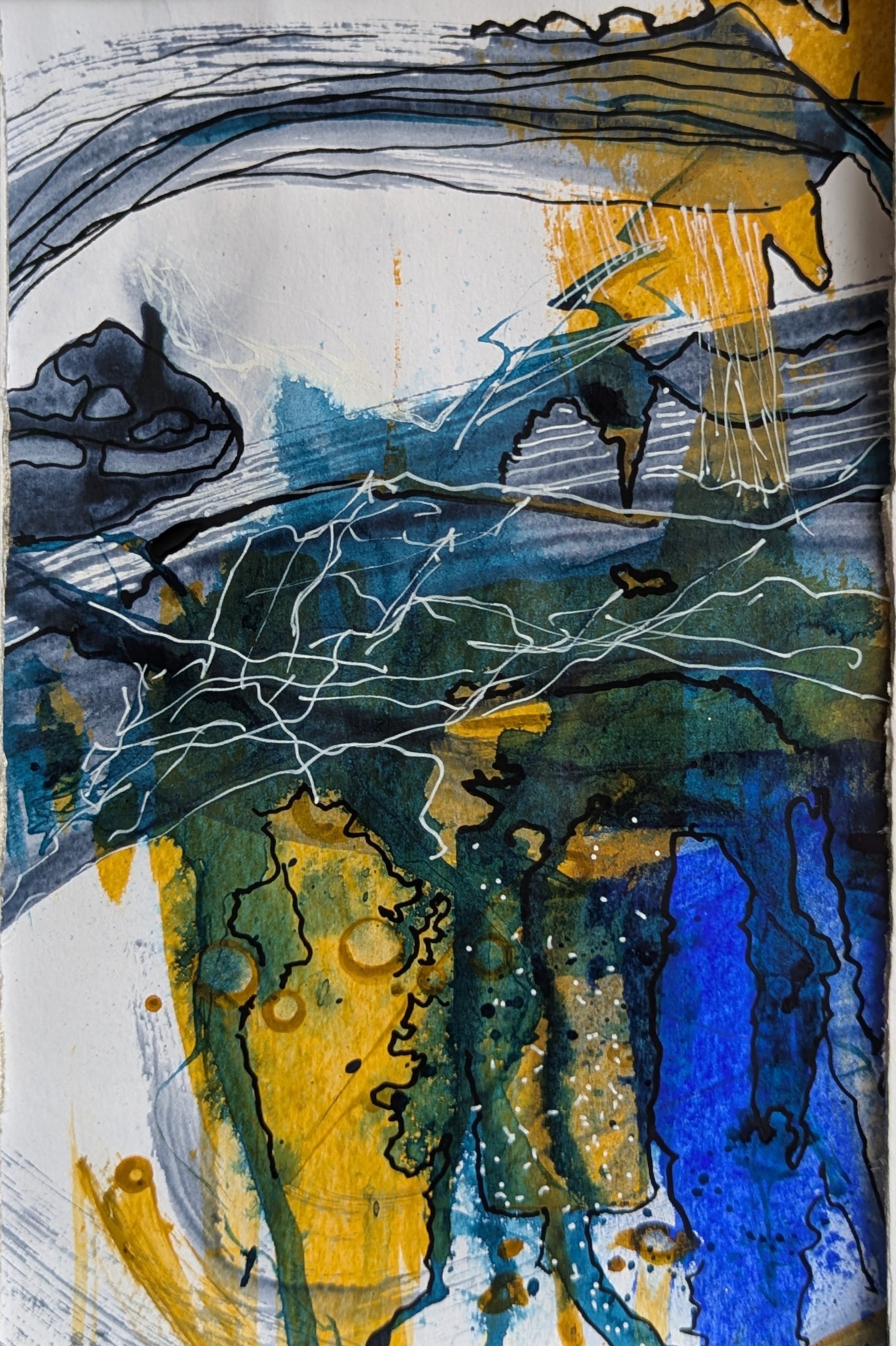 acrylic, ink, markers on paper