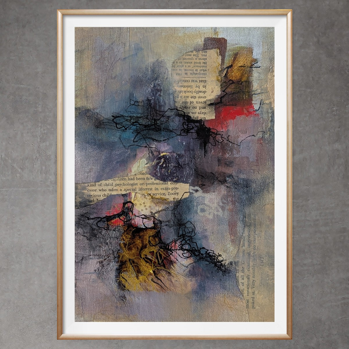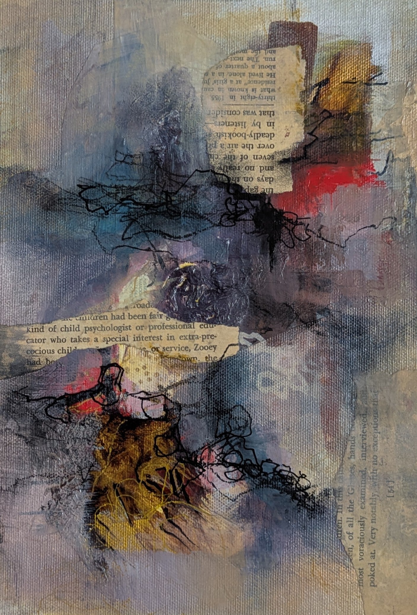 acrylic, collage on canvas panel 8"x12"
