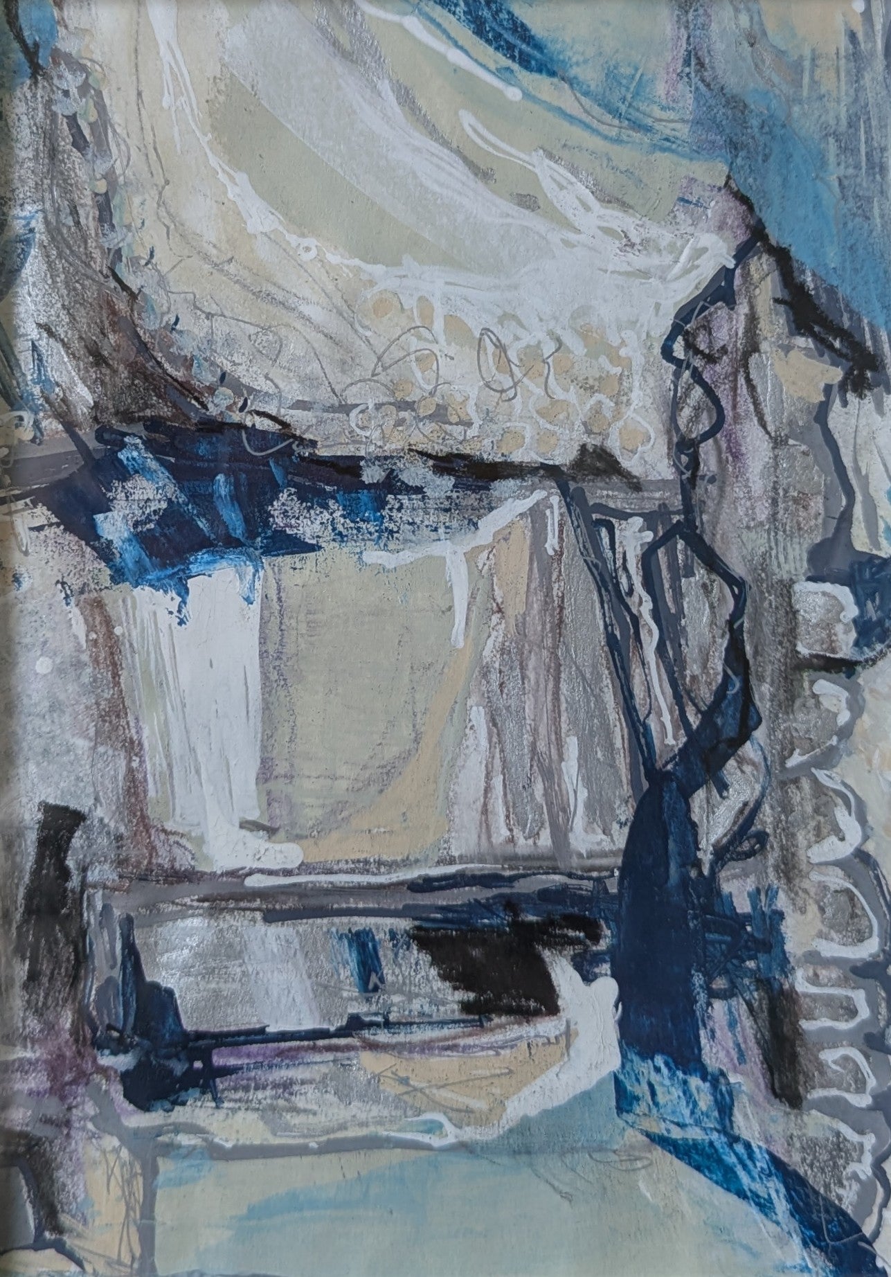 Acrylic markers, pencil, charcoal on paper, 5"x7"